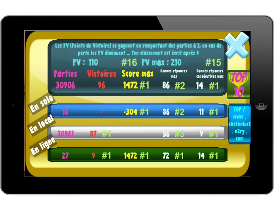 On commence avec 20 boules, certaines positives, d'autres négatives, il faut trouver toutes les positives et il y a des coefficients multiplicateurs de points, un pour les positives et un pour les négatives. On peut jouer seul ou à deux en local ou en ligne. Pour pimenter le tout le joueur peut débloquer des bonus ...